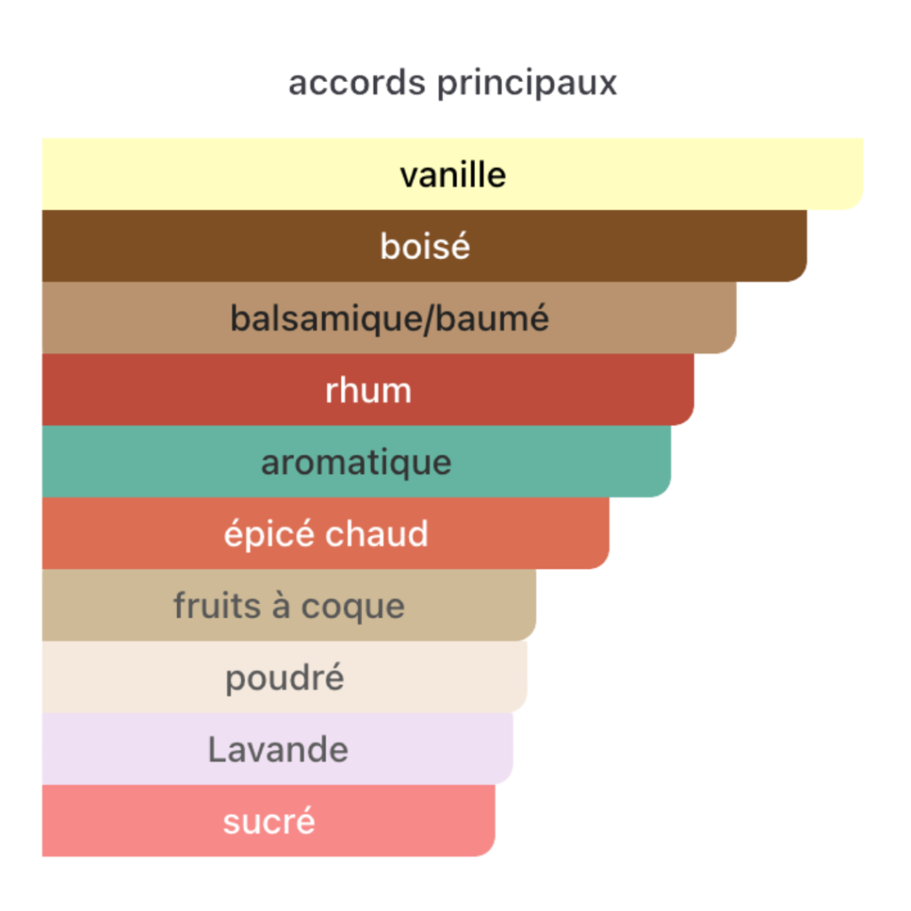 Dès les premières notes, un accord enivrant de rhum apporte une touche audacieuse et moderne. Le cœur dévoile une vanille gourmande subtilement épicée, enveloppée par la douceur aromatique de la lavande. En fond, les bois ambrés et les notes fumées créent une profondeur irrésistible et masculine.